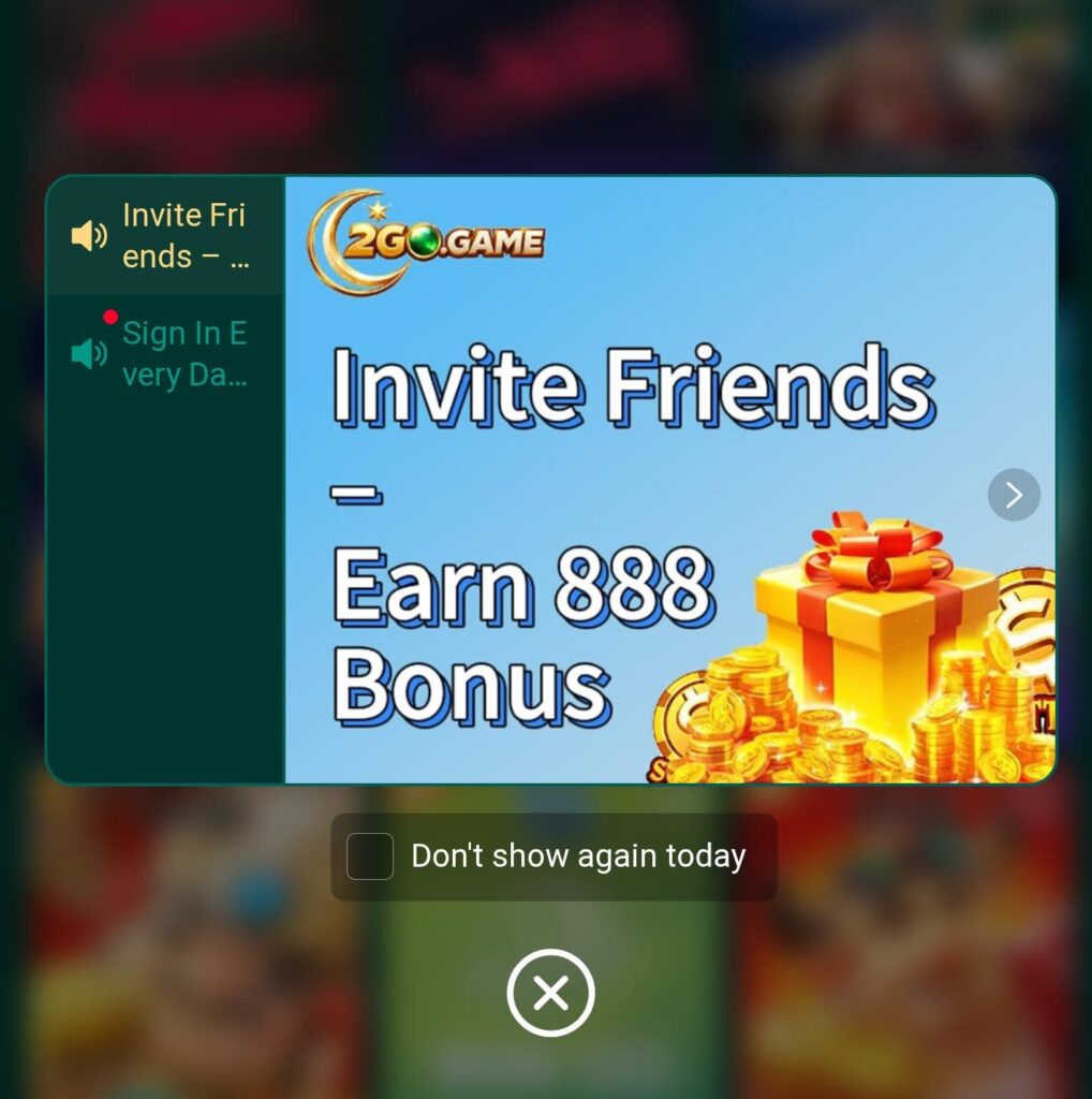 Welcome Bonus in 2G Game APK