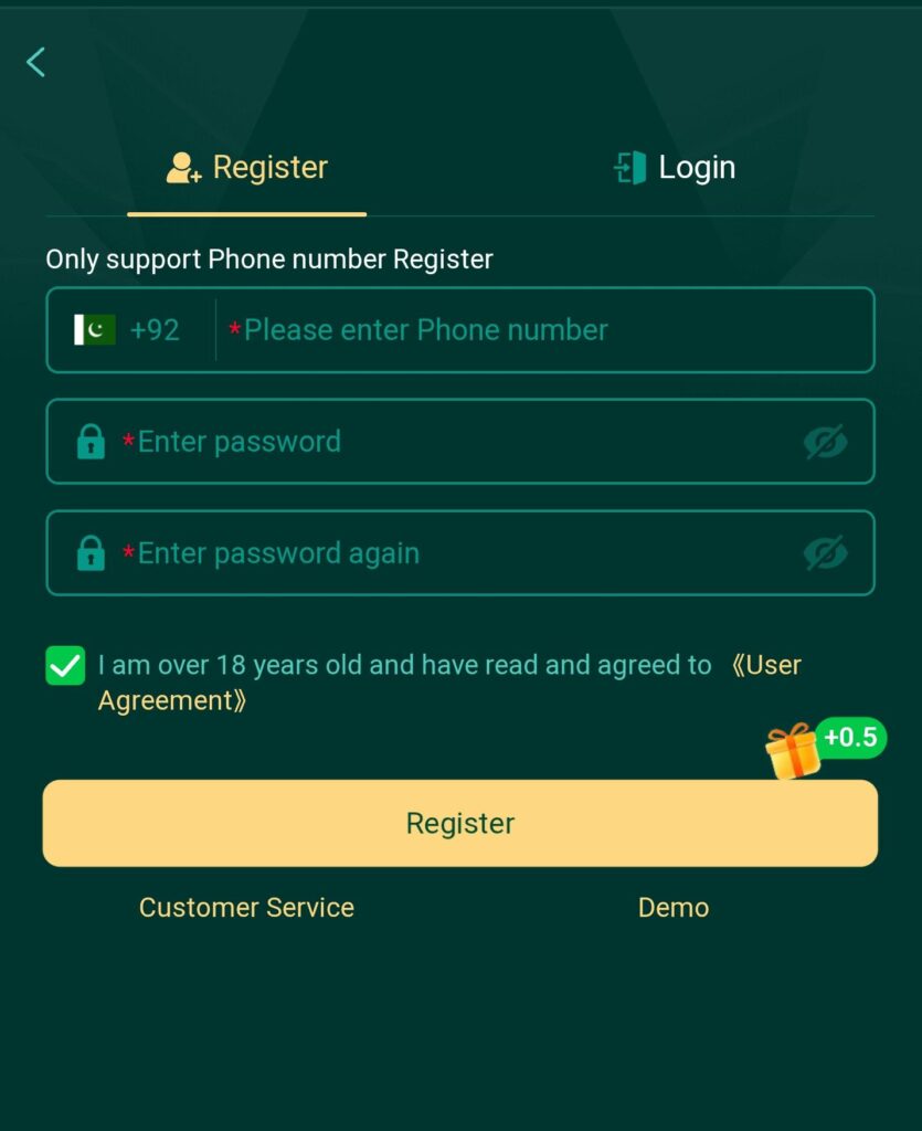 To sign up, go to the official website or app, click the “Register” button, enter your mobile number, username, and password, and then send in the form.